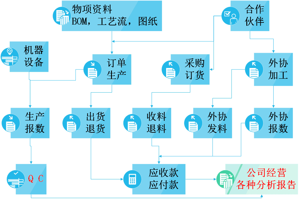 【订单生产】模块功能包括:销售订单,生产领料,生产回仓,销售出货,生产工序报数,报数QC。 生产报数有三种方式:单机单工序扫码报数,工序填表报数,手机端报数,企 …