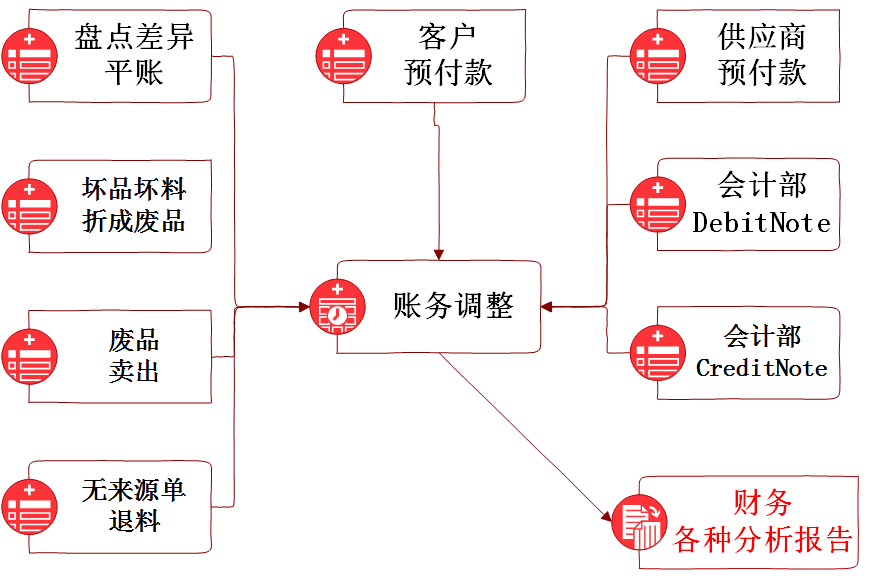 【账务调整】常常用于记录盘点差异平账,客户预收款,供应商预付款,以及与销售单和采购单都没有紧密关系的各种费用如借项通知单,贷项通知单,员工借款和还款也可以记录在 …